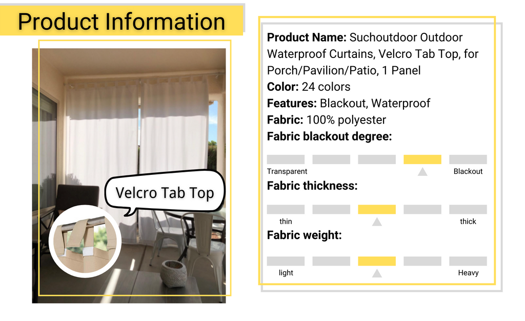 Suchoutdoor Outdoor Waterproof Curtains, Velcro Tab Top, for Porch/Pavilion/Patio, 1 Panel