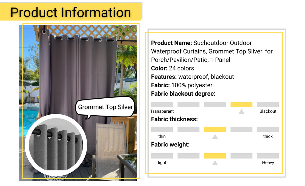 Suchoutdoor Outdoor Waterproof Curtains, Grommet Top Silver, for Porch/Pavilion/Patio, 1 Panel